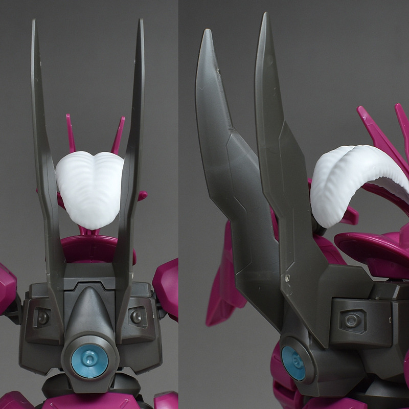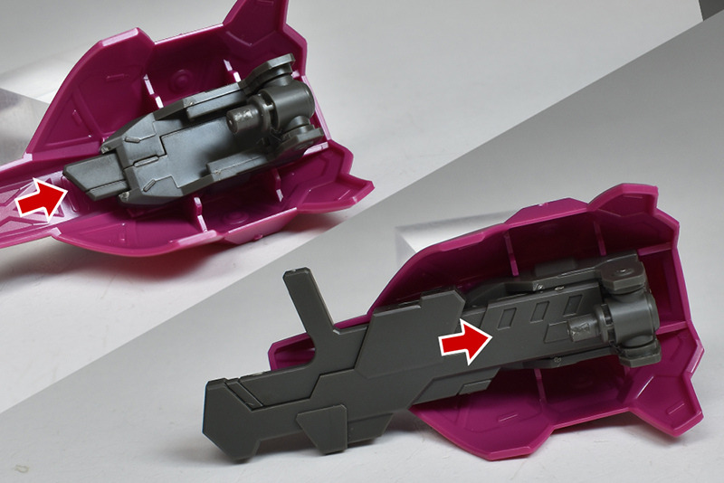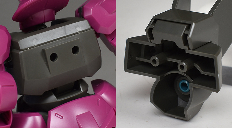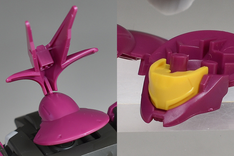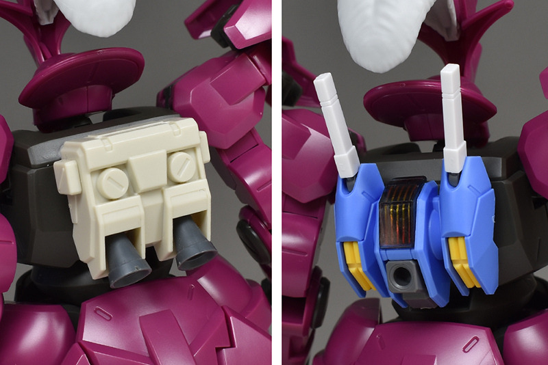 The backpack is a single part with plenty of holes on the inside. It has a common structure with two dowel connections, so it can be equipped with backpacks from HGUC kits and other kits in the same series, such as the Gundam Aerial.