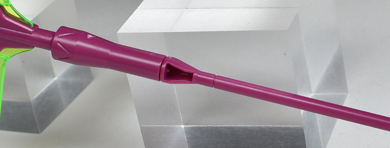 When posing the Beam Partisan, the strength of the joints in the arms and other parts is high, so the hand guards, which have relatively weak fixing strength, are put under stress and are prone to coming off. Therefore, when changing the direction of the Beam Partisan, it is a good idea to handle the hand guard parts with care.