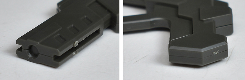 The beam rifle can be held simply by inserting the grip into the hand parts. It can be held without any gaps and does not wobble. The rear stock slightly interferes with the forearm, but it is not a big deal. It is a lightweight weapon, so it is easy to pose.
