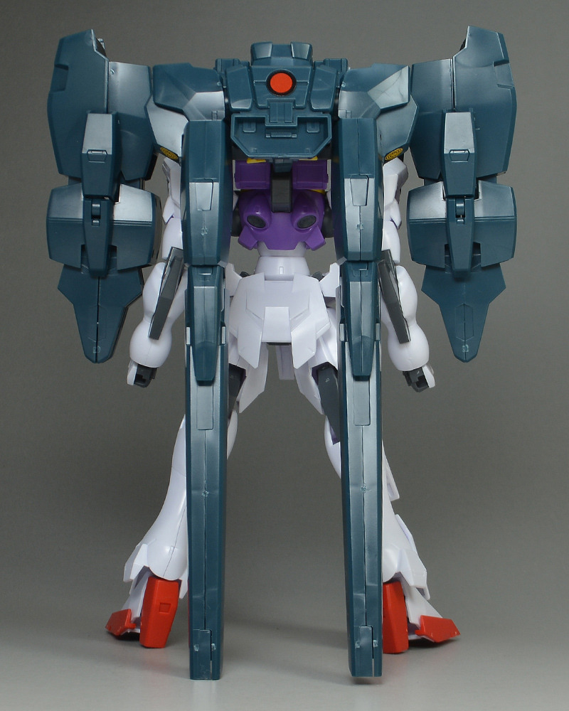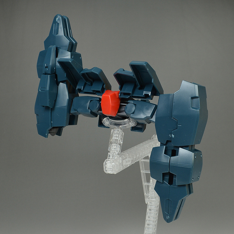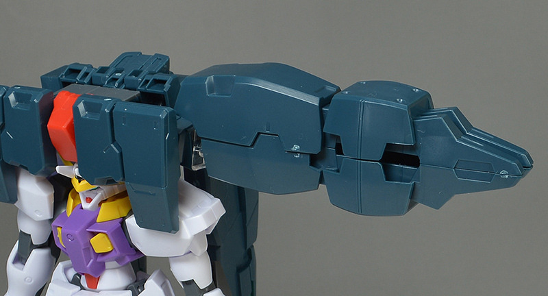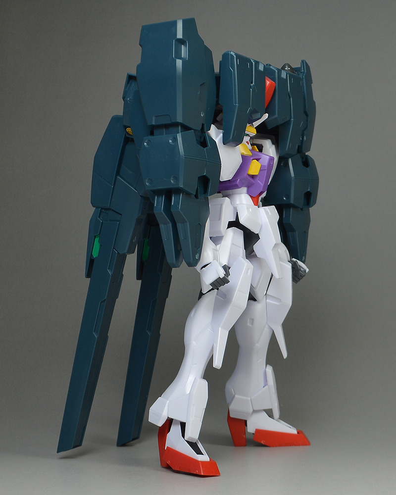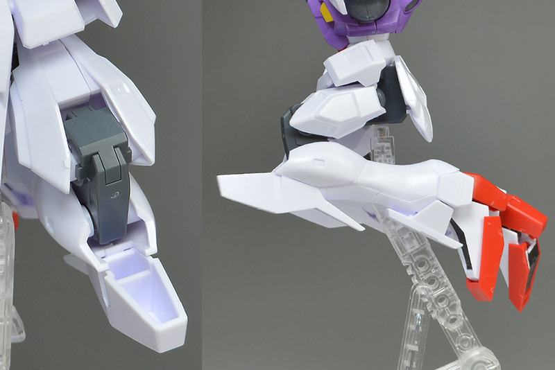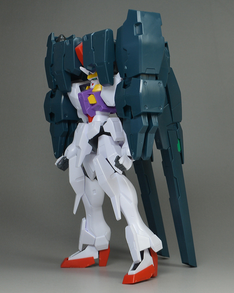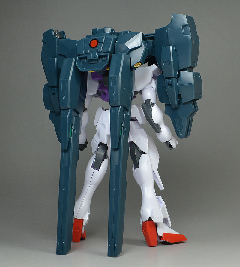 The rear armor can be slid up and down. The rear part has a cone-shaped GN Drive molded as a separate part. The cone part needs to be painted white.