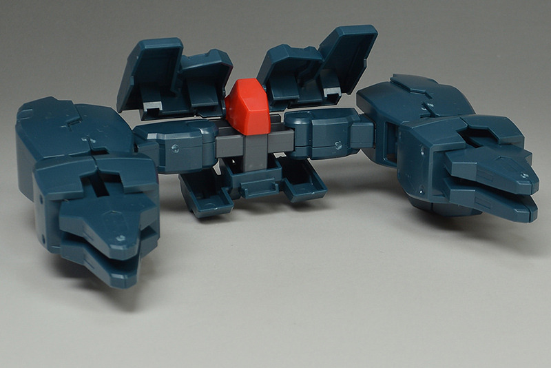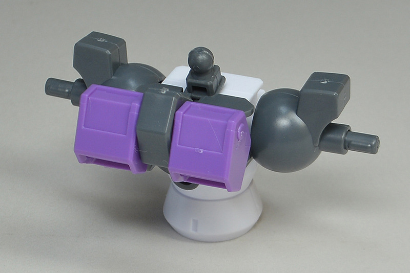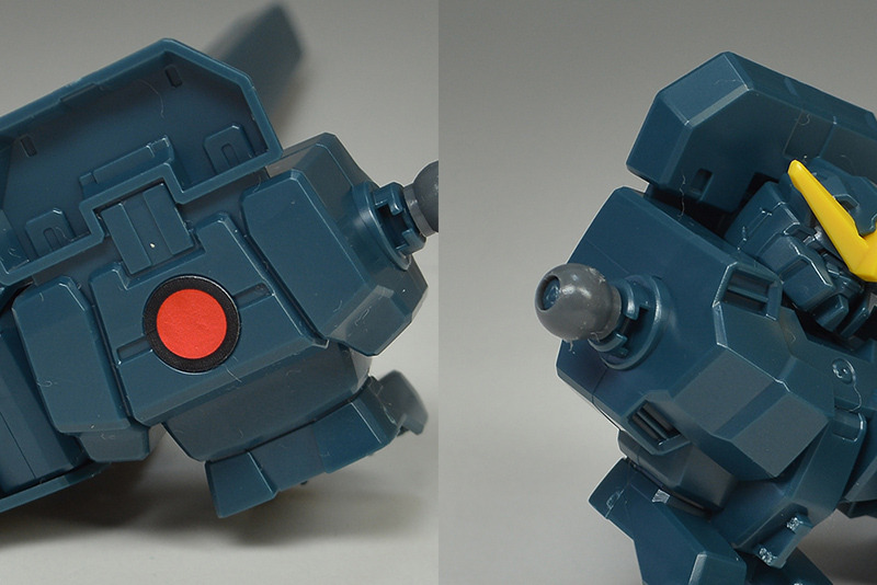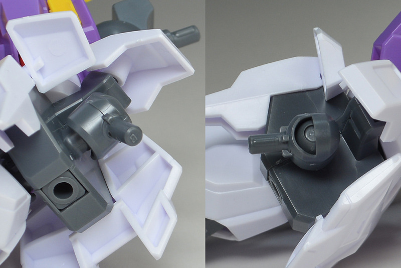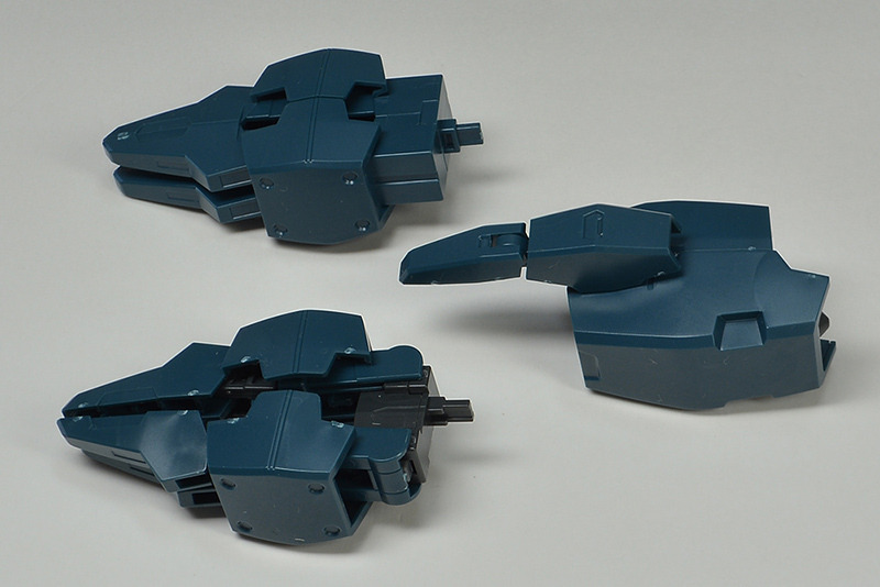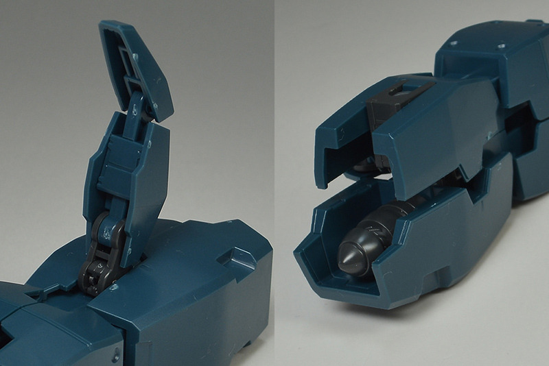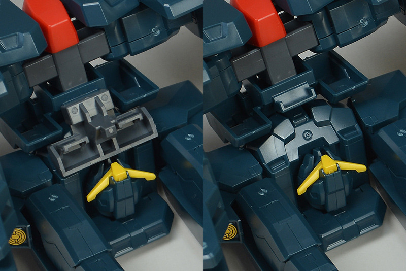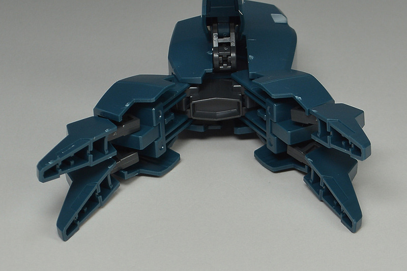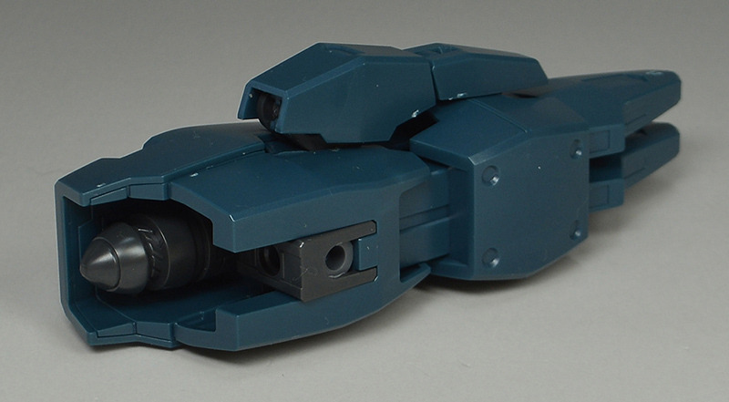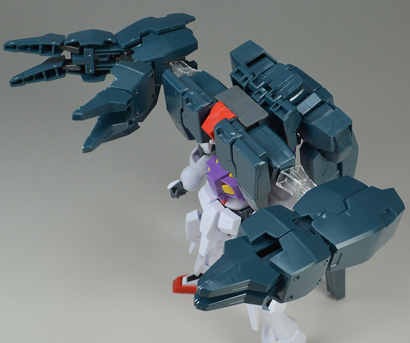 The rear armor can be slid up and down. The rear part has a cone-shaped GN Drive molded as a separate part. The cone part needs to be painted white.