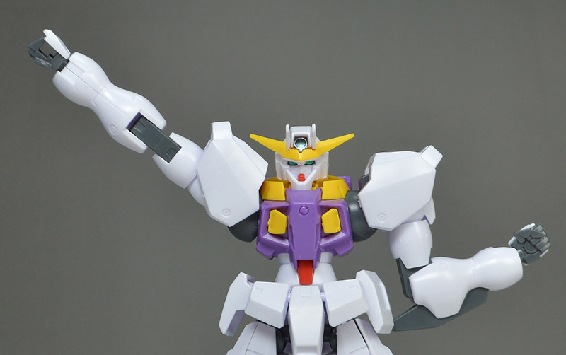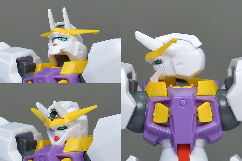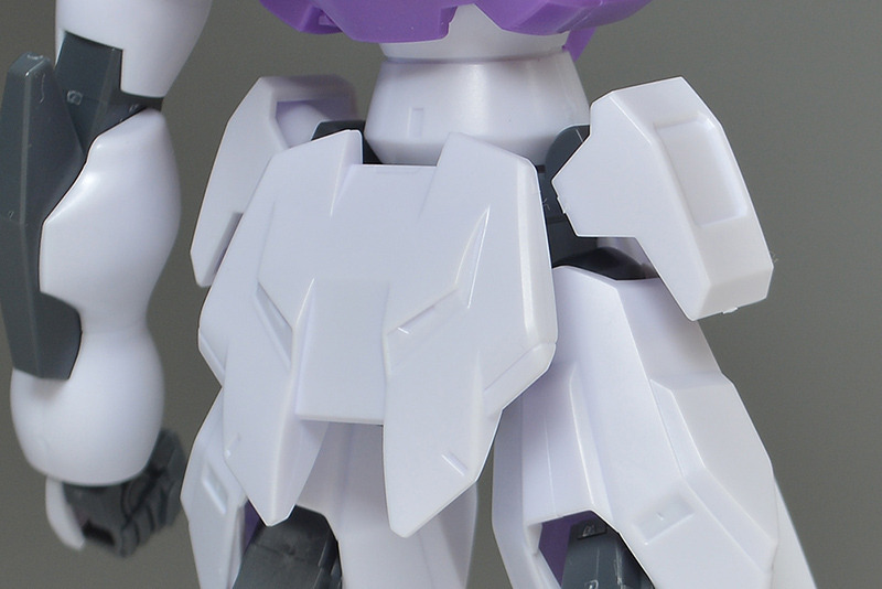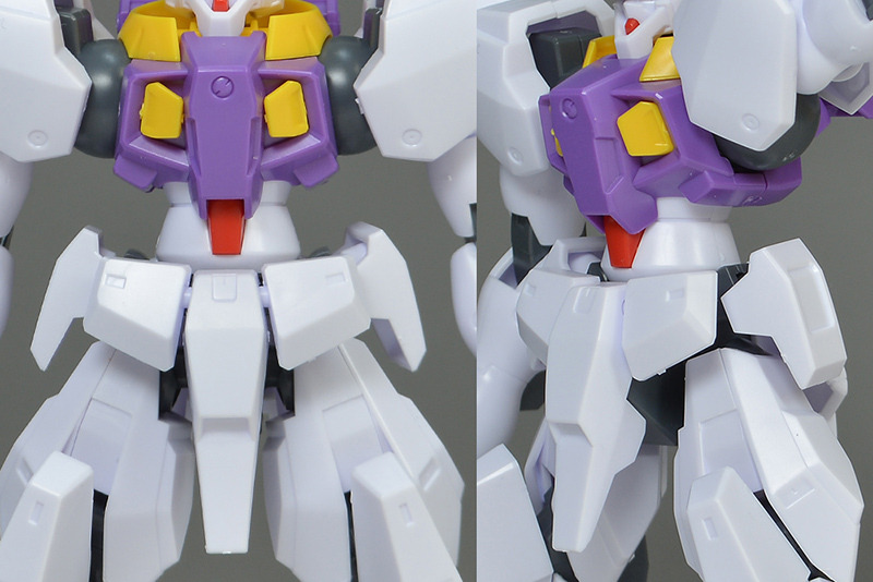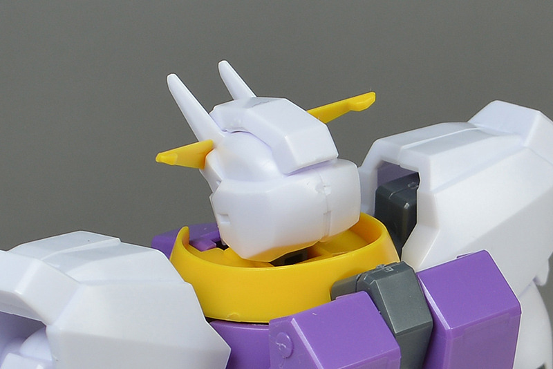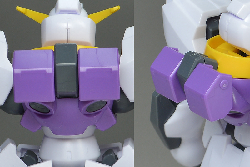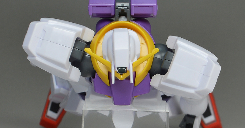 The main body is molded in white. Purple is used on the chest, and some parts are colored in Gundam-type basic colors such as yellow and red. Some of the coloring is compensated for by stickers, but it is not very extensive.