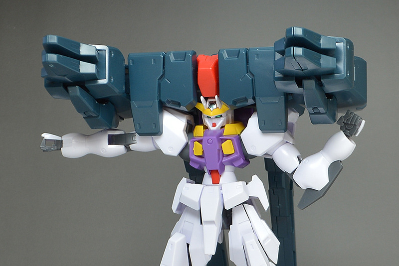 By unfolding the Seravee unit so it doesn’t get in the way, the Raphael Gundam becomes easier to move, allowing for more freedom in posing than I expected. Because of its unique shape, it’s quite interesting to try moving it in various ways.
