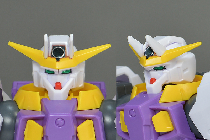 The head of the Seravee Gundam II is sculpted inside, and is movable to a certain extent thanks to a ball joint at the base. The head is assembled by sandwiching the face parts, and there is a seam from the top to the back of the head.