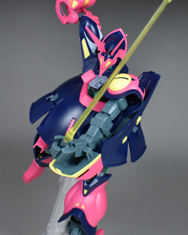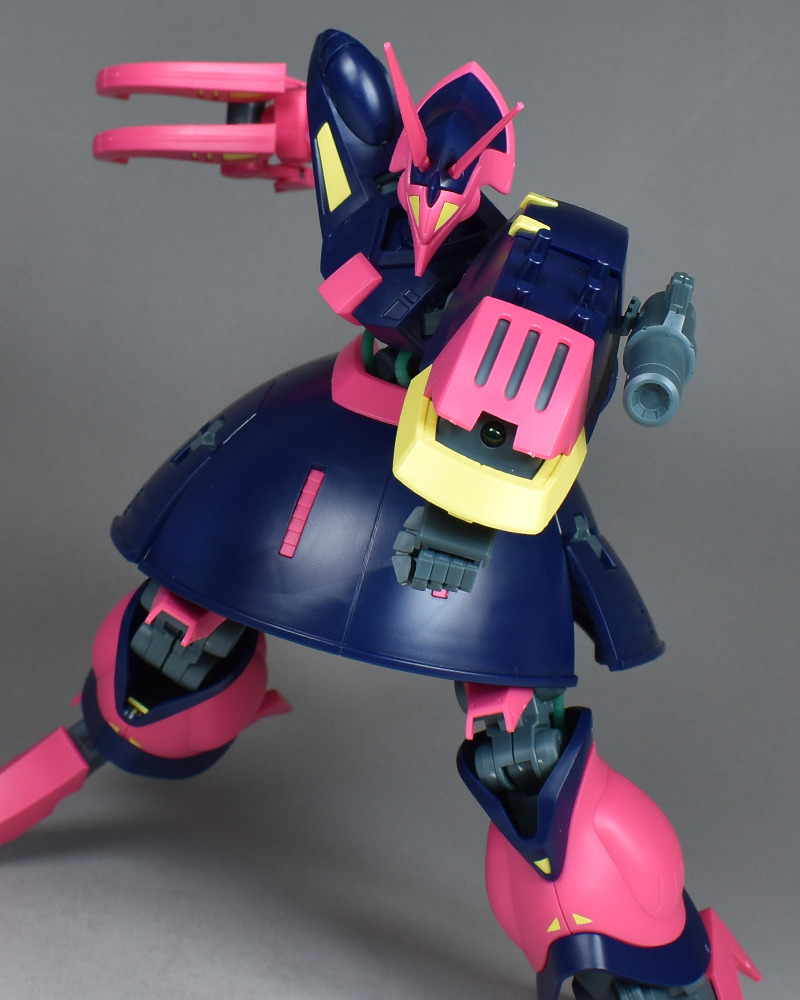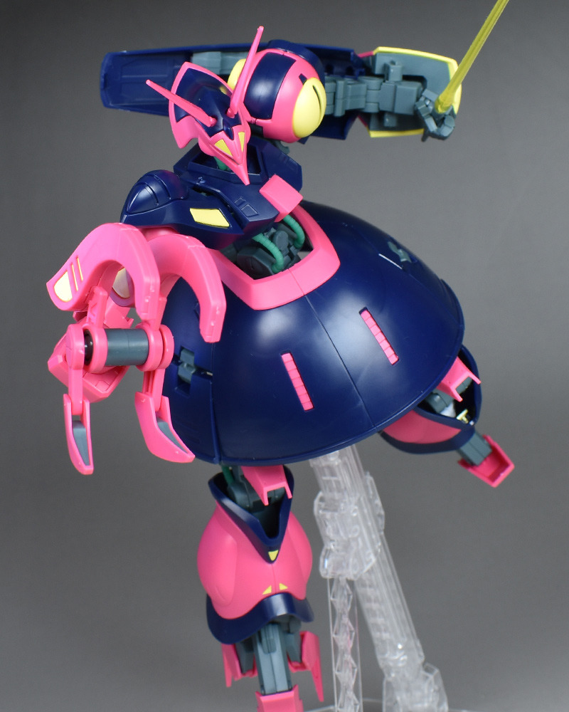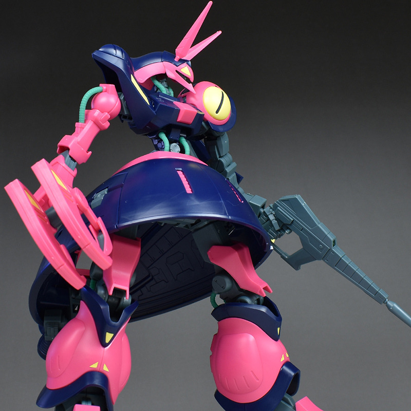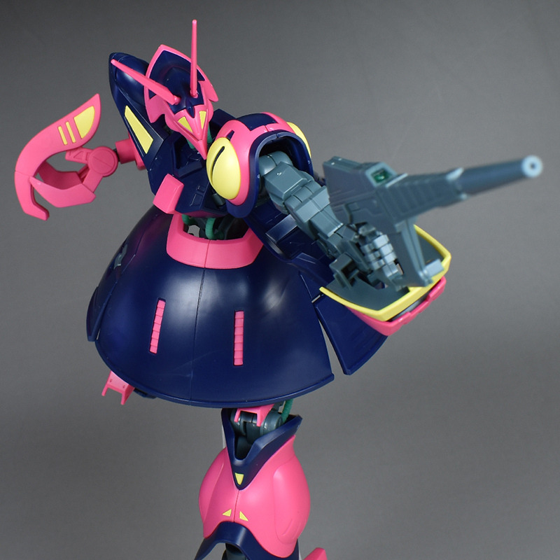 The molding colors are mainly pink and dark blue, with some light yellow in parts. Stickers are only used to supplement some parts such as the head mold and mono-eye, and most parts are color-coded by part. There is almost no need for painting.