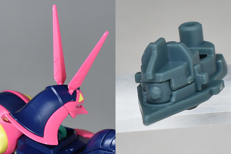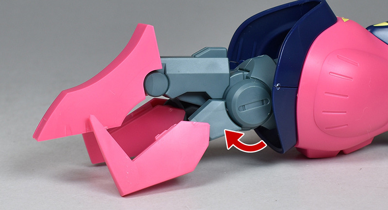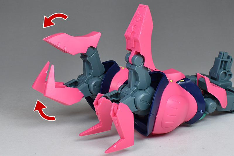 To transform into MA mode, first move the shoulder armor and shield on the left arm to make it compact. Remove the hand parts.