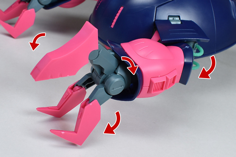 The sole is a claw type with two parts at the toe and heel. It’s not a very complicated combination, but the soles of the feet and the base of the claws are color-coded, making it a sturdy construction. The ankles are also a clamping type, but the seams are molded in a stepped pattern. Be careful as the armor on the rear claws can easily come off.