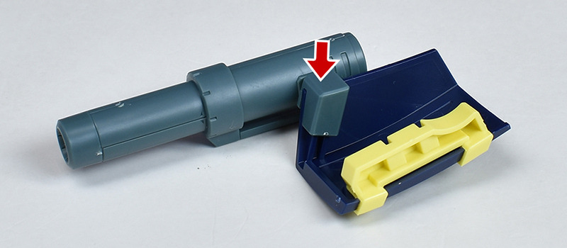 Check the left arm with the shield (nose) removed. It has a complicated structure due to the small parts. The upper arm is cylindrical and has no seams. The forearm is a clamping type, but the seams are molded with a step-down mold. The joint between the upper arm and shoulder can be rotated.