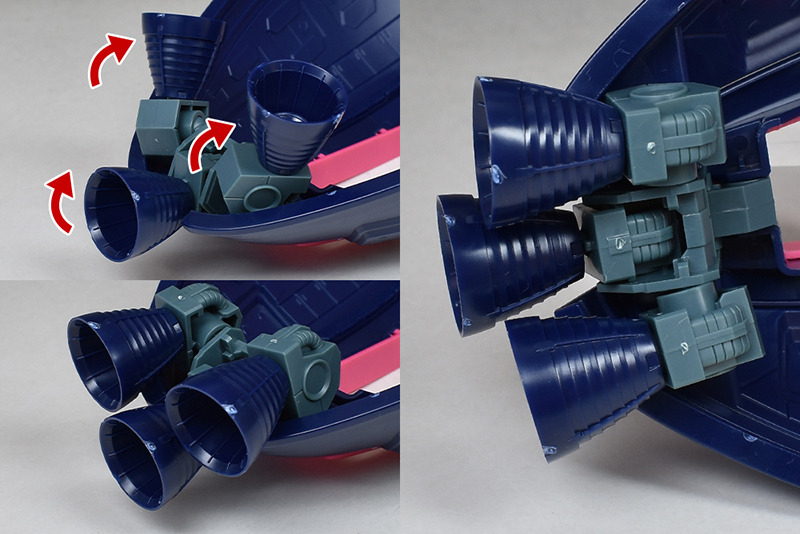 Three verniers are stored at the rear. There is a movable gimmick that exposes them when transforming into MA form.