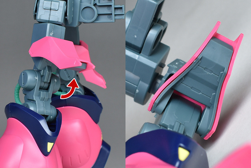 The right shoulder armor is a pinch-type, but the seam at the top is molded in a stepped pattern. The surface armor is colored yellow.