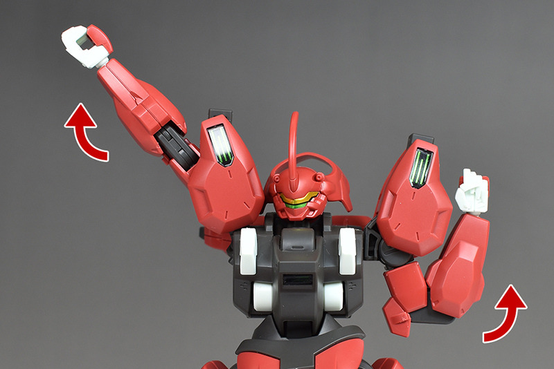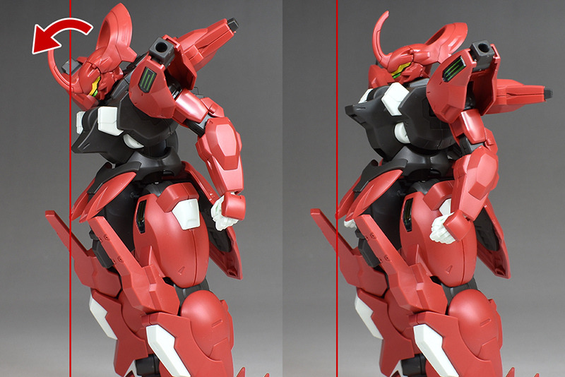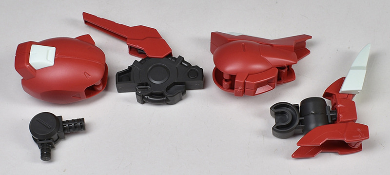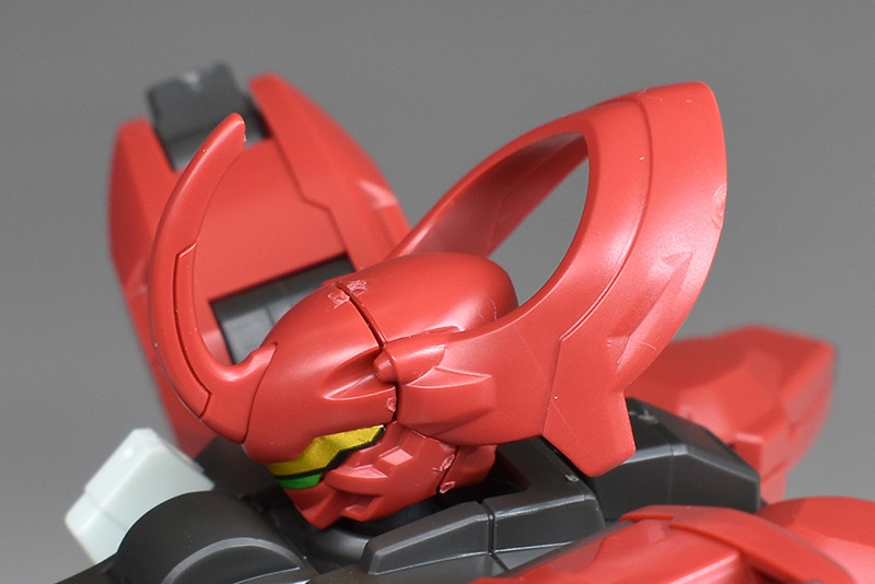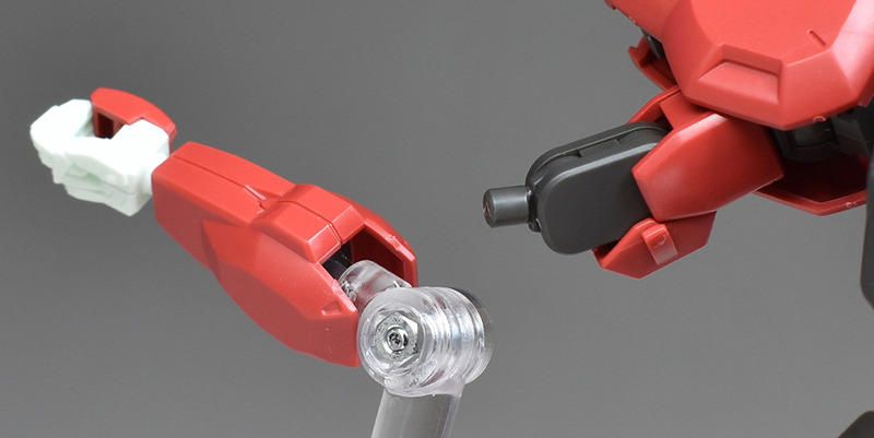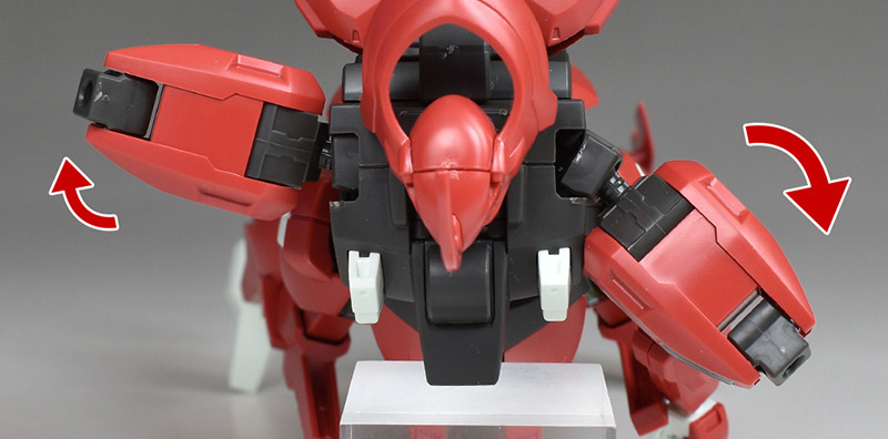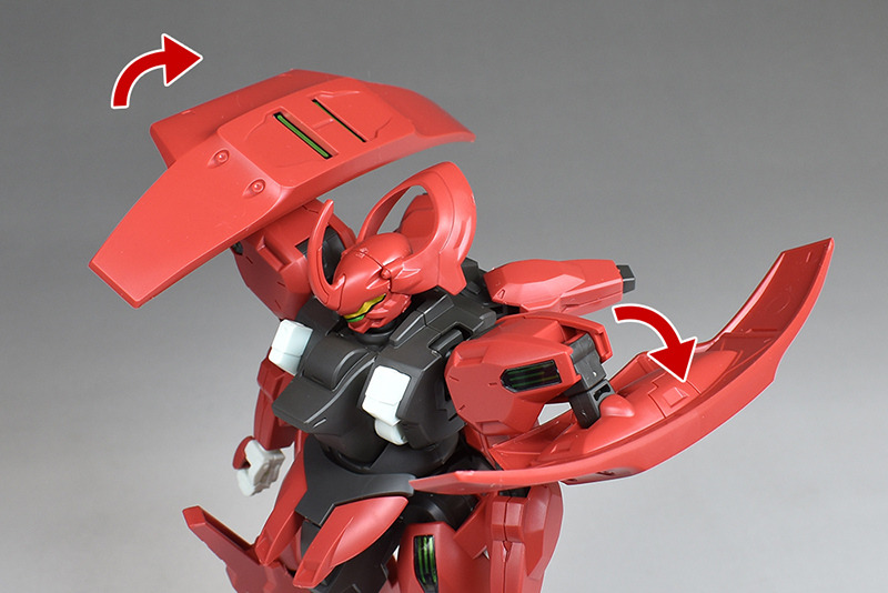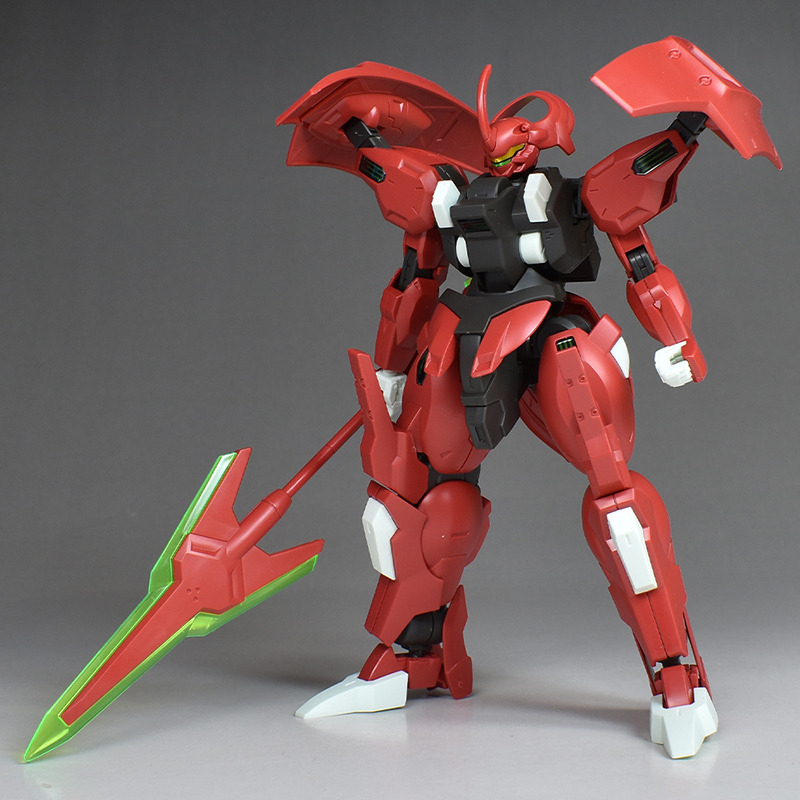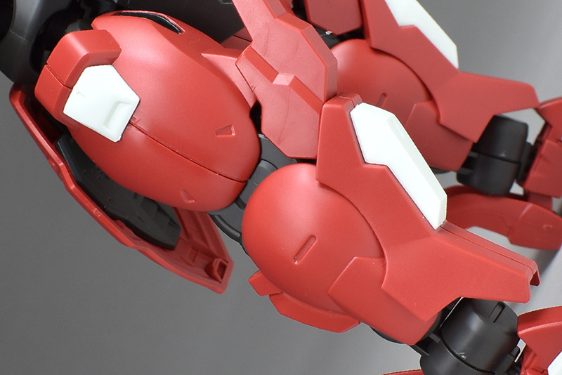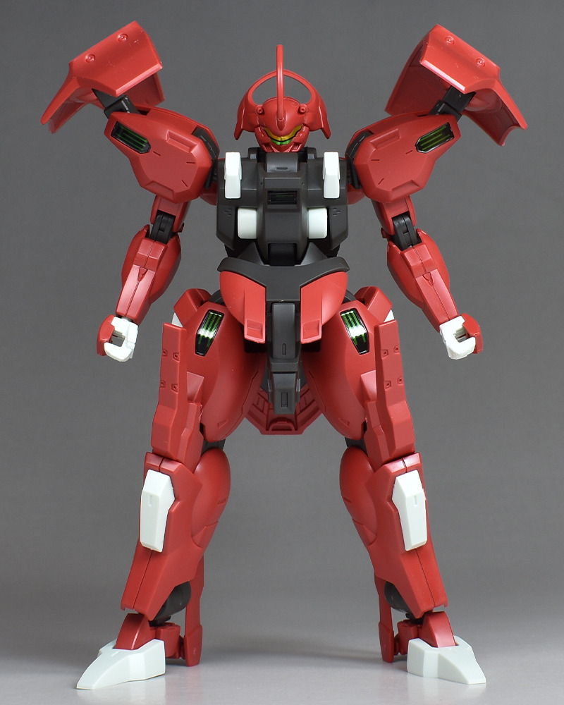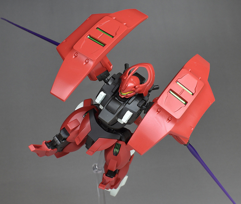 Although the red coloring is not unusual for Gundam, the red fuselage still has an impact, and the included armament with its many variations, such as the Ishvira, Shackle Crow, and Beam Javelin, is quite playful. The shoulder ambiker also has a strong presence, and is one of the items that gives a sense of sculptural beauty even when posed.