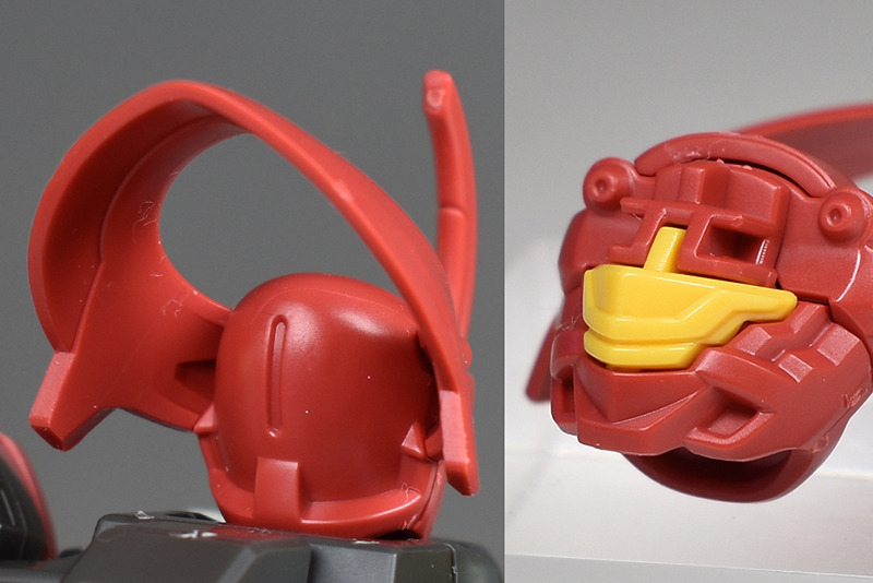The yellow and green of the slit-shaped camera eye are reproduced by sticking stickers onto the yellow parts, and the beam vulcan on the forehead needs to be painted gray.