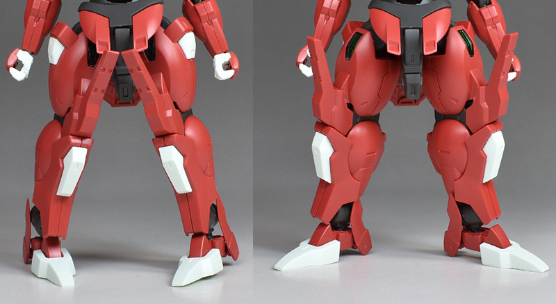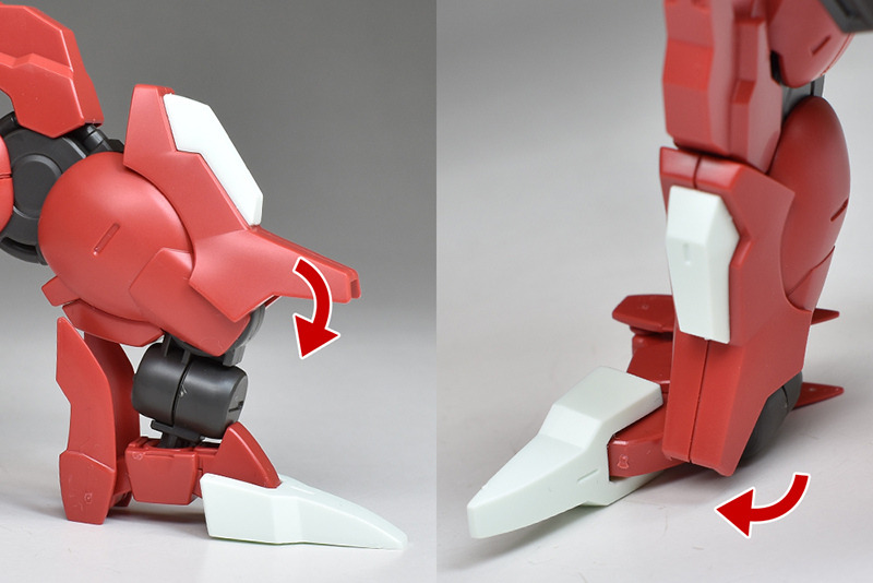 The knees are equipped with vertical knee crushers. The front side also has a pellet mine launch port. The back side is a bit sad that there is no meat; the shell units on the front and sides of the thighs are reproduced by covering them with clear parts over stickers.