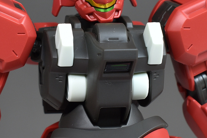 The rounded armor around the waist is also impressive. The rear armor is also uniquely designed with apogees and slit moldings. The lower part of the front armor and the duct in the center of the rear armor need to be painted gray.