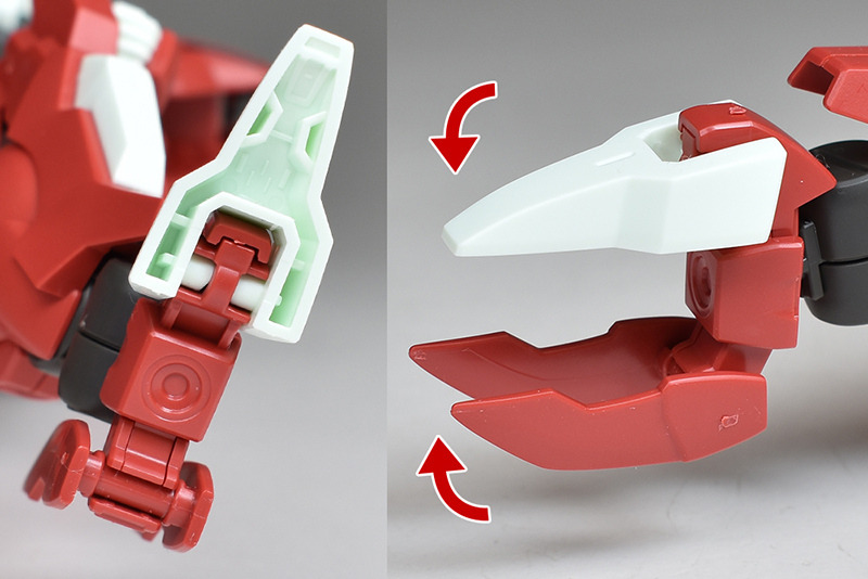 Bタイプは前腕と交換することができ、先端にはビームサーベル刃も組付けが可能です。他ではあまり見ないギミックで特殊。