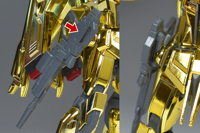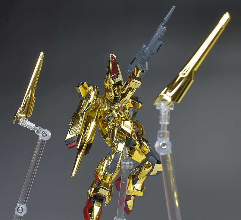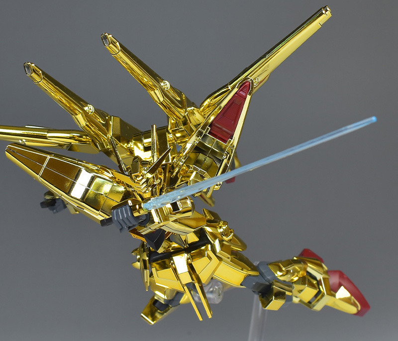 The gold plating is gorgeous and gorgeous, and the brilliant appearance shown in the HG remastered version is well reproduced, giving it a different look from the normal aircraft. The color separation of the parts is also very detailed, and the fact that it doesn’t require much painting is a nice touch. The modeling is solid and the gimmick is well reproduced, and the back beam cannon can be realistically reproduced in its ejection state.