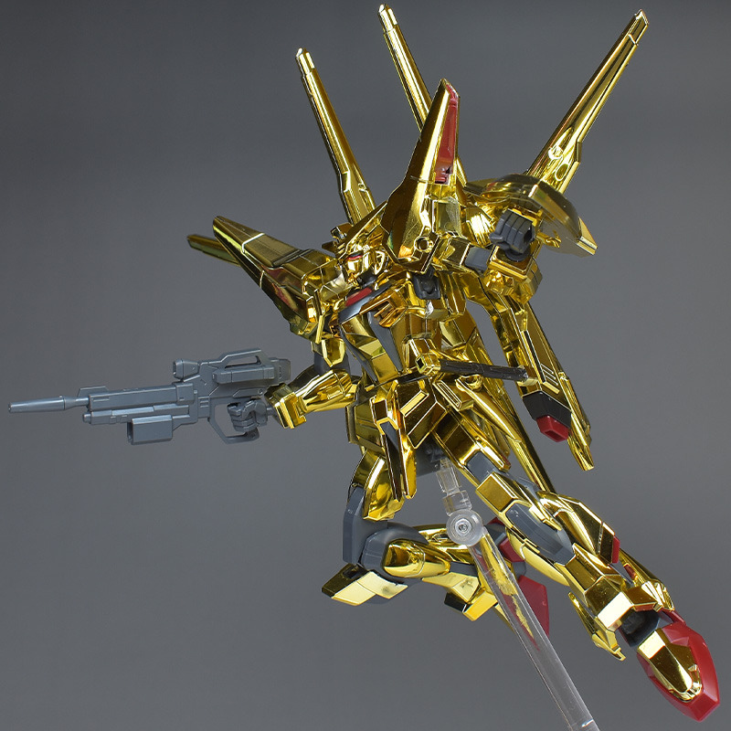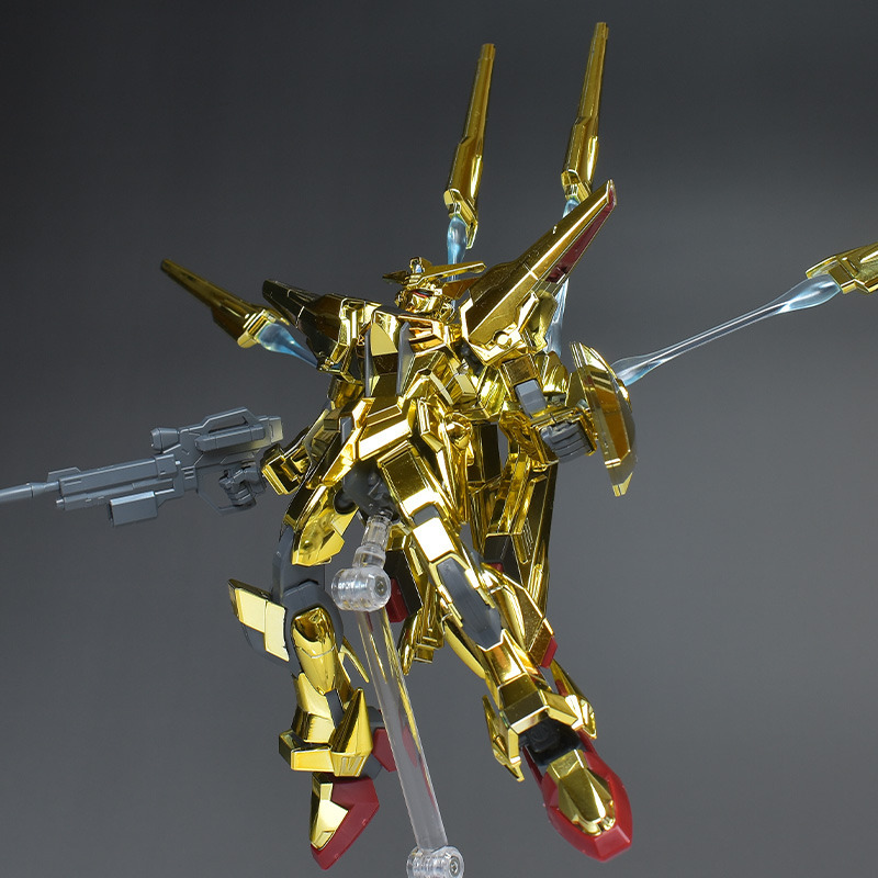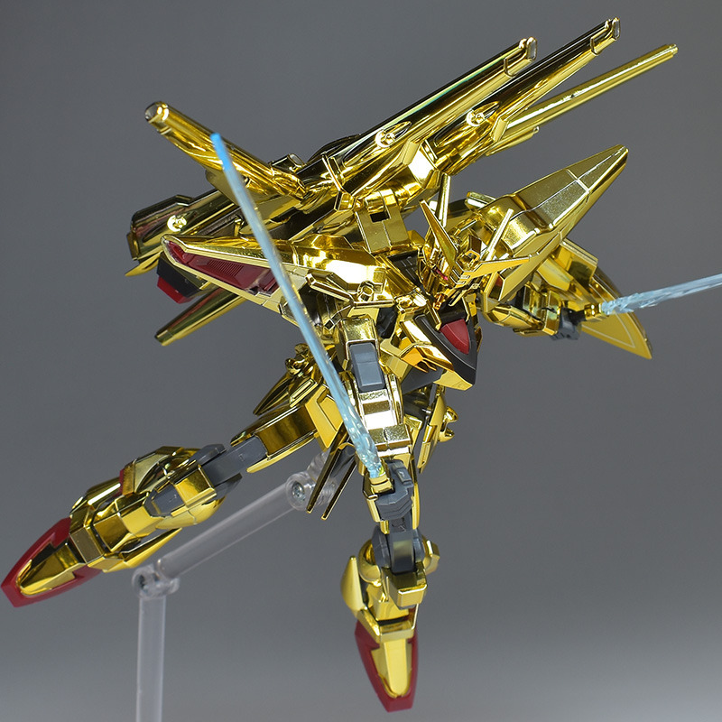 HG Shiranui Akatsuki Gundam is a 1/144 scale model kit of the MS “ORB-01 Shiranui Akatsuki Gundam” that appears in “Mobile Suit Gundam SEED DESTINY”. The glittering color of the entire body is reproduced with gold-plated parts. The kit includes effect parts that allow you to recreate the firing state of the triple beam cannon on the back. The price is 2,640 yen (tax included).
