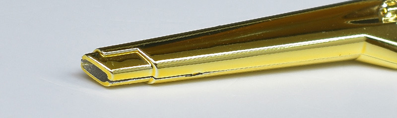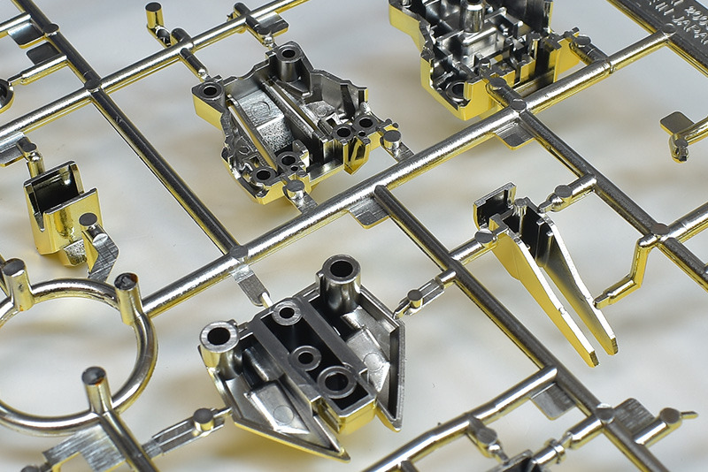 The plated parts used on the exterior are under-gate type, so the gate marks are not exposed and the finish looks great just by assembling it.