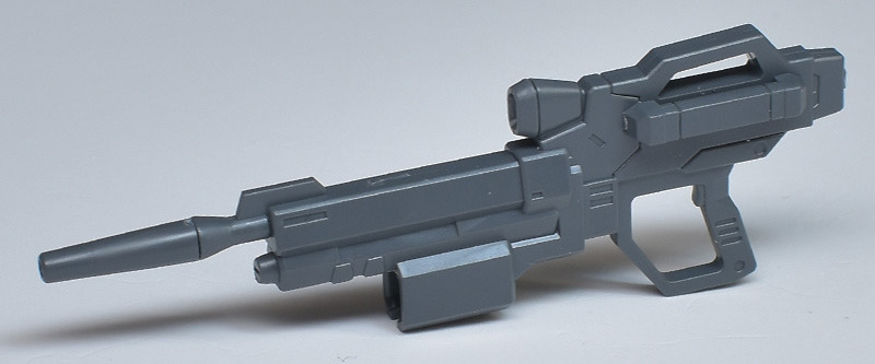 72D5式ビームライフル「ヒャクライ」。アカツキ計画が凍結された後に改めて開発されたビームライフルで、コンパクトながらも威力は高く、「百雷」という名前に相応しい連射性能に優れているとのこと。上部のセンサーは白く塗り分けが必要です。