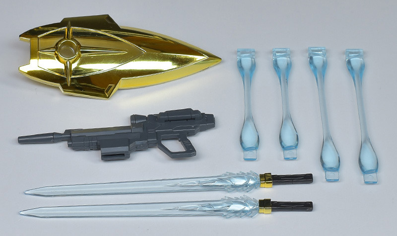 By attaching the beam blade, it can be used as a naginata-like weapon. The handle is color-coded with plated and black parts, but some of the molding needs to be painted wine red or gold. The beam blade is also clear blue, so it needs to be painted clear pink.